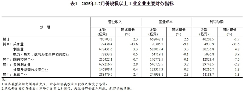 1—7月份,全國(guó)規(guī)模以上工業(yè)企業(yè)實(shí)現(xiàn)利潤(rùn)總額40203.5億元,同比下降1.7%(按可比口徑計(jì)算,詳見(jiàn)附注二)。